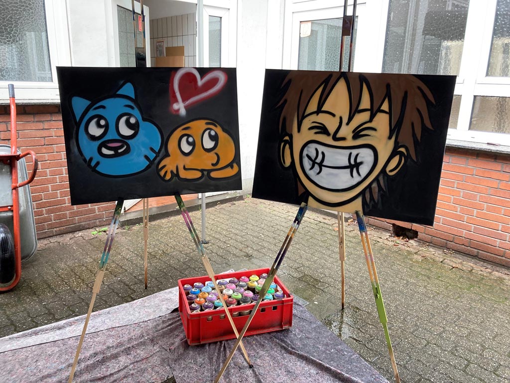 Am 12.04.2023 konnten die Kinder und Jugendlichen unserer Einrichtung an einem zweistündigen Graffiti-Workshop mit MR. Graffiti – Mark und Kathrin Roberz teilnehmen.